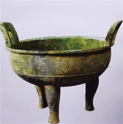 另外,出土的弦纹铜甗,通高53cm,甑高7cm,口径15cm,足径48cm,鬲高17cm,大约为公元前1046—公元前771年的文物。
