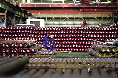 衡钢员工检查入库的钢管。