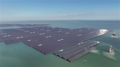 11月13日拍摄的位于山东省东营市的国华HG14海上光伏项目。