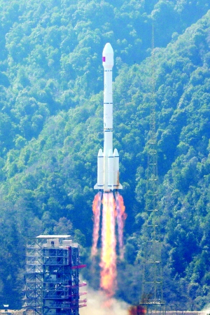 2月12日,我国在西昌卫星发射中心用长征三号乙运载火箭(及远征一号上面级),成功发射第五、六颗北斗三号全球组网卫星。 ■新华社发