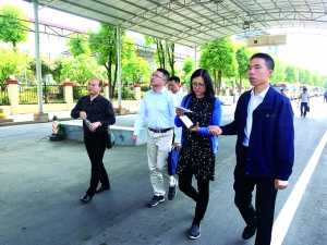 任贤龙(右)向前来检查指导工作的相关人员介绍情况