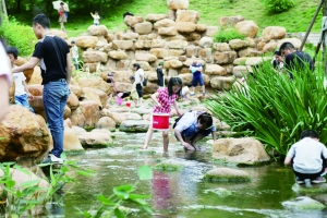 陆家新屋的小溪让很多城市孩子体验到乡野之趣