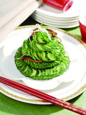 “练就这一 ‘蓑衣花刀’技艺,没有捷径可走,唯有勤学苦练。”陈跃林告诉记者,首先要保持平静的心态,静下心来一刀一刀地模索。他每天至少练习2—3小时的 “蓑衣花刀”,5年时间里练习切过的黄瓜、莴苣、萝卜至少达1千公斤以上。从多次失败经验中,他找到刀法诀窍;从长期反复的练习中,他逐步找到手感,已经能够娴熟地把控食材,最终剞出完美的“蓑衣花刀”。
