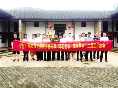 “七一”期间,市安徽商会组织党员、入党积极分子赴红色革命教育基地夏明翰故居开展主题党日活动。多年来,该商会党委以“围绕发展抓党建,抓好党建促发展”为理念,建立规范化党员活动中心、图书室、远教站点等,充分利用QQ群、微信群、微博等载体,不断加强党员教育和管理,实现了商会党建工作有序推进。 ■记者 邹红辉 摄