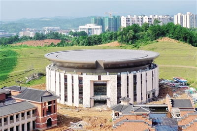 记者在祝融剧场现场看到,剧场的主体结构基本完成,“火”元素极具特色。