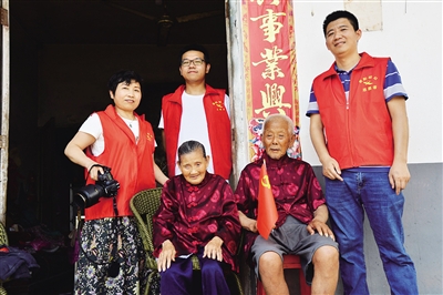 本报讯(文/图 记者 周瑞华 通讯员 尹朝辉 李气章)“看镜头,头稍微往右边一点,微笑。”“咔嚓”一声,专业相机为百岁老人留下了精彩的瞬间。这是6月12日至6月14日,发生在衡南县“百年印象·百岁老人感党恩”尊老爱老志愿服务活动中的一幕。