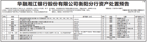 华融湘江银行股份有限公司衡阳分行资产处置预告