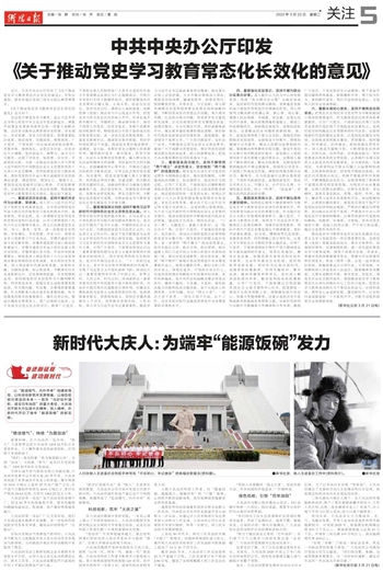 中共中央办公厅印发 《关于推动党史学习教育常态化长效化的意见》
