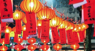 “弹壁灯贴三面题,摩肩搭背来猜谜。本似前朝射覆事,文思机敏方解疑。”“一灯如豆挂门旁,草野能随艺苑忙。欲问还疑终缱绻,有何名利费思量。”这两首清代的诗,描述的就是猜灯谜活动的场面。