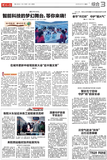 守护人间烟火气,点亮百姓平安灯。春节长假是团圆喜乐的8天,也是衡阳公安坚守忙碌的192小时,全市公安民辅警用脚步丈量雁城大地,把身影融入平安守护,全市各大景区、交通枢纽安全有序,社会治安大局持续平稳,刑事警情、治安警情实现“双下降”,未发生较大及以上刑事案件,未出现大面积、长时间交通拥堵,向人民群众交出新春“平安答卷”。