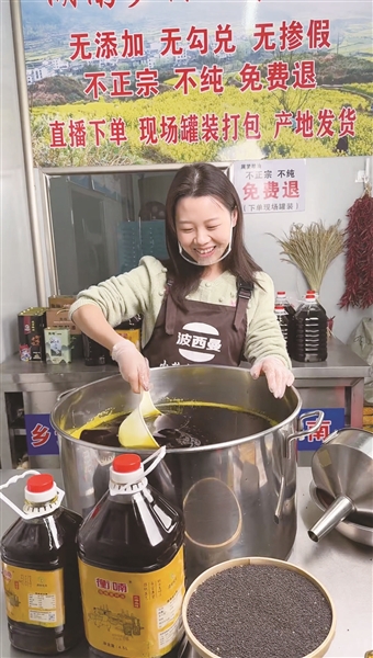 “我们公司一年线上渠道销售额突破600万元。”胡梦呤还经常拍摄视频,宣传产品。她用一串串电商数据为榨油厂注入新活力,让数字时代的油香飘得更远更广。