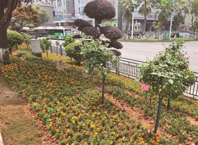 4月29日上午,记者在解放路观景台绿化带看见,绿化养护人员挥锄栽植花苗,孔雀草的明黄与一串红的炽烈巧妙拼接,树状月季亭亭玉立,错落有致的花影相映成趣,勾勒出一幅唯美的自然画卷,为城市滨江添增了不少活力与色彩。此次花卉提质升级涵盖了湘江东岸望湘亭、蒸水南堤雅士林大桥等五大景观节点,相当于用花卉为滨江岸线佩戴上五枚璀璨的胸针。新栽的矮牵牛、孔雀草、一串红具有耐高温、花色艳丽、花期长等特点,预计“五一”期间全面进入盛花期,将接力演绎长达半年的视觉盛宴。