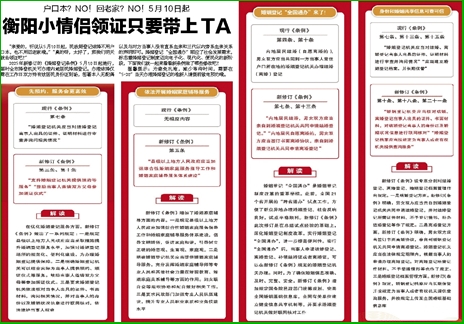 “亲爱的,听说从5月10日起,民政局登记结婚不用户口本,也不用回老家哦。”“真的呀,太好了,那我们明天就去领证吧!”