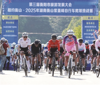 5月11日,“相约衡山”2025 年湖南衡山紫盖峰自行车爬坡挑战赛火热开赛。来自广东、广西等9省区的近700名自行车运动爱好者,在衡山紫盖峰展开速度与毅力的比拼。(详见二版) ■衡阳日报全媒体记者 罗茂盟 摄