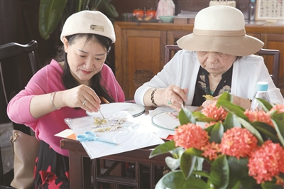 当日上午,10组亲子家庭在国学讲师带领下齐诵《孝经》,随后亲子压花活动温馨上演。“团扇又称合欢扇,自古便是传递情谊的信物。”活动现场,专业讲师手持缂丝团扇娓娓道来,在讲师的精心指导下,一面面素白团扇渐次绽放出温馨浪漫的画卷。
