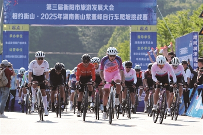 五月的紫盖峰,满目葱茏。一场将体育激情与文旅魅力融合的盛会——第三届衡阳市旅游发展大会“相约衡山”2025年湖南衡山紫盖峰自行车爬坡挑战赛火热启幕。来自广东、广西、江西、湖南、四川、贵州等9省区的近700名骑行健儿,齐聚衡山县福田铺乡,在赛道上展开速度与激情的激烈角逐。