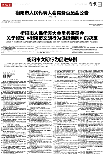 ~~~(2025年4月25日衡阳市第十六届人民代表大会常务委员会第二十四次会议通过 2025年5月29日湖南省第十四届人民代表大会常务委员会第十六次会议批准)