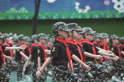 “稍息!立正!”身着迷彩服的孩子们昂首挺立,稚嫩的口令与嘹亮的军歌撞出清亮回响——这是学校每年国庆前雷打不动的新生“成长课”——“爱我中华,强国有我”迎国庆军训展演活动,更是她从烽火岁月中走来的德育底色。