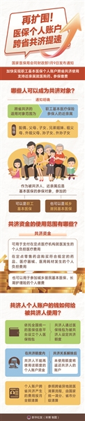 1月9日,国家医保局、财政部发布通知,将在全国范围内推动职工基本医保个人账户实现跨省家庭共济,将共济范围从原先的省内拓展至全国,并支持参保人使用个人账户资金为异地近亲属支付就医购药费用及缴纳基本医保等费用。