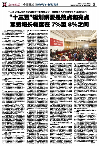“十三五”规划纲要是热点和亮点 军费增长幅度在7%至8%之间
