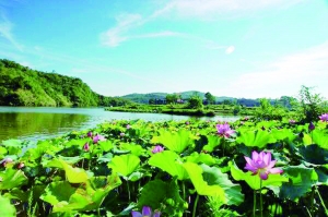 莲湖湾生态农庄负责人谭耀介绍,莲湖湾水域连接管山、临江、清江、卿云、东冲、新育、合家七个村。每年六、七月份,十几里河泽两侧的水里,莲叶田田,游船如织,水鸟成群,荷香十里。