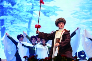 随后,又一盘“特色菜”上菜了——“西边的太阳就要落山了,鬼子的末日就要来到了……”伴着悠扬歌声响起,以衡山籍抗日英雄文立正(铁道游击队政委李正的原型)事迹创作的歌舞表演《铁道游击队之歌》,将烈士的革命故事搬上了舞台,将现场观众又带回了那峥嵘的革命岁月,将现场气氛推向了最高潮。