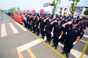 9月19日上午,蒸水西路路段骄阳高照,特警、武警、交警、消防等10余个方阵整齐列队、警容严整,我市公安机关举行了“迎接十九大 忠诚保平安”誓师暨“雁城铁拳”跨区域反恐演练。