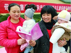 3月6日,祁东县在该县第五人民医院召开2018年全县基本公共卫生服务项目工作暨迎国(省)检现场会, 并深入步云桥镇开展宣教,不断提升广大群众的幸福感、满足感和获得感。图为当地群众领取《母子健康手册》。