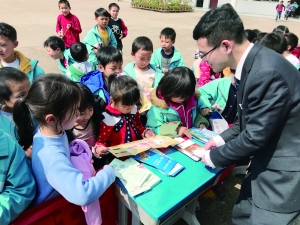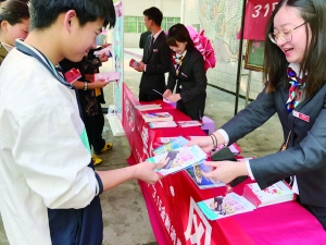 ↑给中学生发放宣传资料