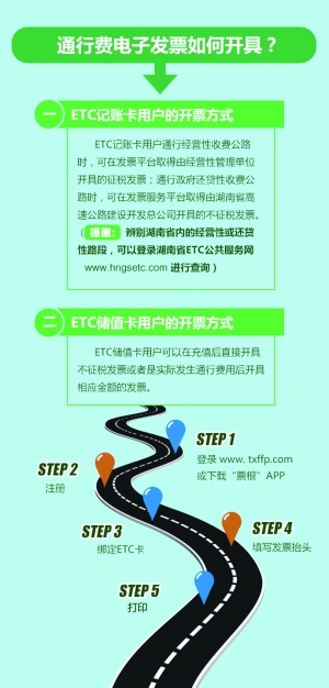 “在2018年1月1日之前,ETC用户产生的所有充值及消费记录,必须前往ETC代办银行网点去打印纸质发票。2018年1月1日起,ETC用户产生的所有充值及消费记录,都不再开具纸质发票,而是开具增值税电子普通发票。用户不需要再到ECT代办银行网点去打印纸质发票,而可以通过电脑网页登陆电子发票服务平台www.txffp.com或用手机登陆‘票根’APP移动客户端,根据网站或APP提示的流程进行注册并绑定车牌,然后自行打印电子发票。”省高速公路监控指挥中心监控ETC管理中心吴博介绍。