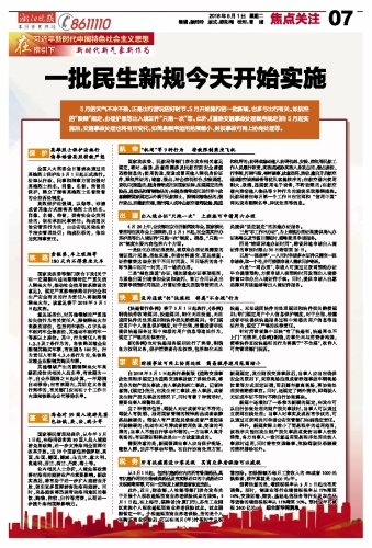 一批民生新规今天开始实施