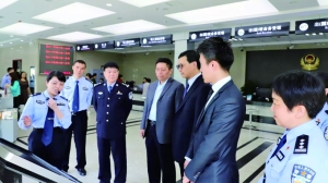 4月19日,香港特别行政区驻武汉经济贸易办事处入境事务处首席事务主任程和木一行来我市进行出入境业务交流活动。程和木一行参观了市公安局人口与出入境接待大厅,现场向工作人员咨询、交流相关业务问题,就出国境、境外人员接待窗口设置情况、窗口职能职责及出入境证件办理情况进行详细了解,对我市人境部门一系列便民利民举措和信息化建设赞不绝口。高 明 摄