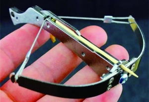 有媒体对牙签弩进行的试验结果显示:经测速仪测量,牙签上加装金属头后,射出时速可达256公里,有效射程超过5米,甚至能射穿玻璃镜片,可以说是威力巨大。