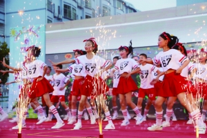 随后是热闹的开场舞,一曲《向快乐出发》,轻快活泼,律动十足,晚会现场瞬间被动感的音乐覆盖。精彩的节目轮番上演,一年级小朋友带来的舞蹈《一年级》童趣十足,台中央、灯光下的孩子们化身一朵朵美丽的鲜花,簇拥着、舞动着,在绿叶的映衬下经历阳光、雨露,快乐地成长。舞蹈《我们的时光》将小孩子天真活泼、健康向上的个性表达得淋漓尽致。跆拳道表演,一招一式有模有样,尽显华岳学子精气神,孩子们在运动过程中,既愉悦了自己强身健体,又培养了团队的协作精神。民族舞《舞动的旋律》则用独特的服饰和优雅的舞姿展示出青春的魅力风采。乐器合奏中,展示了华岳师生多才多艺的综合素养。诗朗诵《少年说》《我爱你,中国》,伴随着悠扬清丽的音乐,孩子们一吟一诵,朗朗上口,诠释了自己对快乐、对梦想的理解与追求,也展示出新时代少年儿童意气风发、斗志昂扬的精神风貌和爱党爱国、向上向善、全面发展的远大抱负……最后一首歌伴舞《明天会更好》把晚会推向了高潮,使整个操场成了欢乐的海洋。