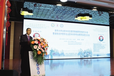 近日,南华大学泌尿外科及器官移植研究所成立大会在南华大学附属第二医院召开。大会宣布:南华大学附二医院党委书记罗志刚教授任研究所所长,李建军教授、陈仙教授及汪翼教授任副所长,这标志着我市首家校级临床专业研究所成立,我市泌尿外科临床与科研工作将向更高的层次和更广的宽度发展。来自省内外三百余名专家学者共同见证了这一里程碑时刻。