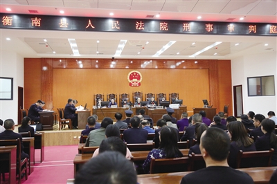 本报讯 4月18日,衡南县首例破坏生态环境刑事附带民事公益诉讼案在衡南县人民法院公开开庭审理,并在中国庭审公开网同步进行庭审直播。衡南县人民法院院长廖宏伟担任审判长,与两名审判员、四名人民陪审员依法组成合议庭,衡南县人民检察院检察长盛云平、检察员王芳担任刑事附带民事公益诉讼公诉人出庭支持公诉。