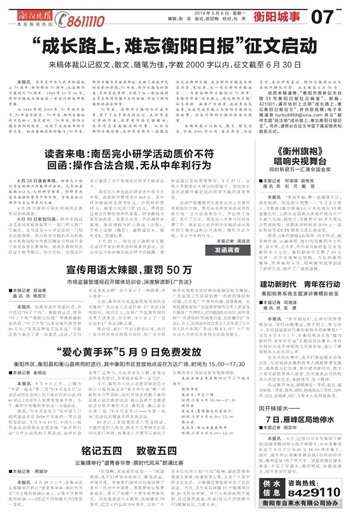 衡阳晚报 版面七 A07 2019-05-061 2019年05月06日 星期一