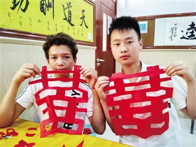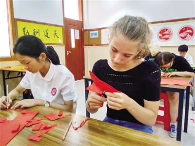 “过去只在电视上观赏过中国剪纸和京剧艺术,今天在老师们的指导下,我学剪纸、唱京剧,感觉太奇妙了。”上海德国学校的学生Viveca Pauckert欣喜地说。6月25日上午,17名德国学生与市雁栖湖成龙成章学校初中部国际课程班的学生一起上剪纸课和戏曲课,进一步了解中国的传统文化艺术,感受中国传统文化的独特魅力。下午,17名德国孩子走进8个衡阳孩子的家,体验中国家庭生活和家庭文化。孩子们都有一个共同的感受:中国家庭好温馨!