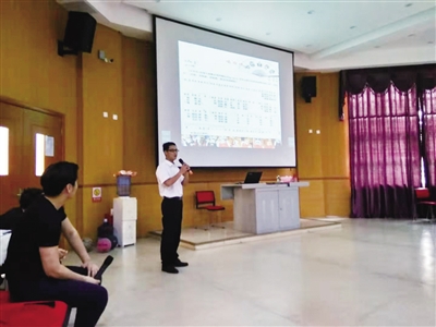 戏曲老师刘辉向学生们介绍京剧的起源,以及行当、脸谱等基本知识。一番了解后,德国学生又跟着老师有板有眼地唱起了京剧《说脸谱》。