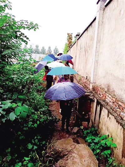 记者随后沿学生们的上学路进行实地体验。出小区门后到新阳小学全程约需30分钟,其中通过小路花费的时间就需要约20分钟。小路路况很差,全为泥路,凹凸不平,勉强容一人通行,沿途杂树、垃圾较多,还需要爬一座山坡。