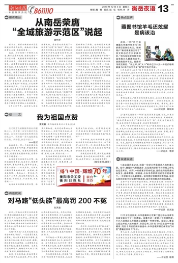 在我看来,一个景区特别是以山水著称的景区,确实有赖于大自然的造化和“鬼斧神工”,但一个景区最核心的竞争力,却是来自管理服务等方面的“软实力”。当然,景区真正长盛不衰吸引游客的“宝典”则是双管齐下、“软硬兼施”,既抓景点规划建设,又抓管理服务水平提升。而从南岳荣膺首批国家全域旅游创建示范区来看,无疑已经做到了这一点。