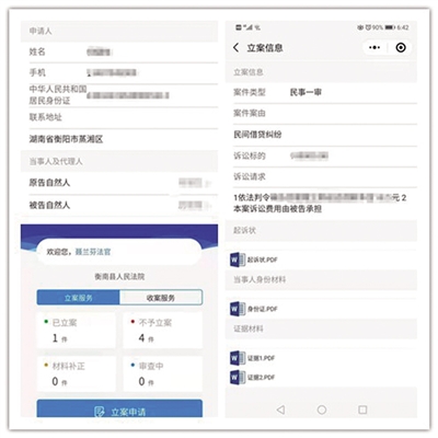 衡南县法院立案庭工作人员介绍,只要当事人材料齐全,协助法院录入并推送诉讼材料给管辖法院后,管辖法院就可以在系统内清晰明了地了解案件信息,并能在十多分钟内审核完毕。