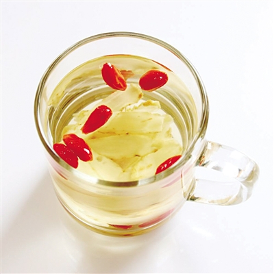 【功效】菊花茶可清热解表,清肝明目。适宜在秋天感冒、发热、微恶风热、口干、尿黄、舌质红、苔薄黄时饮用,也可用于高血压初期出现头痛、目赤等症状时饮用。