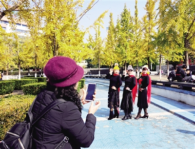 本报讯 晴冷带来的悬殊温差,让岳屏广场收获了流金溢彩如诗如画的“醉美”景色,银杏林61株银杏树满目金黄,引得游人纷至沓来。初步统计,连日来,每天“追叶赏金”的市民游客达500余人次。