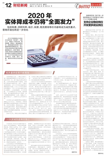 2020年 实体降成本仍将“全面发力”