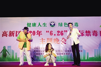 本报讯 6月26日晚,由高新区禁毒委主办、高新公安分局、蒸水办事处承办的“健康人生·绿色无毒”“6.26”国际禁毒日主题晚会在雁鸣溪广场举行。