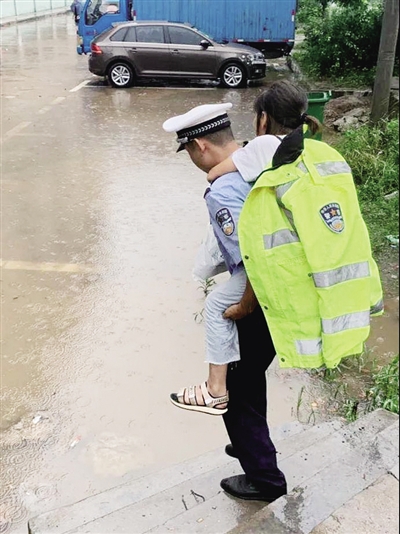 当日14时30分左右,狂风暴雨来袭,衡阳县公安局交警大队一中队对省道336线积极开展巡逻管控,提醒过往车辆注意安全,减速慢行。15时许,樟树乡中心小学分批放学,民警来到校门路段值勤,在校门口开辟学生通道护送学生安全通过马路,并设置警示标志,对家长接送车辆、社会车辆进行有序疏导,缓解拥堵状况。由于暴雨突降,部分低洼地带积水严重,执勤民警将雨衣披在学生身上,顾不上脱下鞋祙,直接蹚进水里,或背或抱,护送至接送家长的身边。尽管雨水淋透全身,执勤民警始终在大雨中坚守岗位,保障通行人群和车辆的安全。