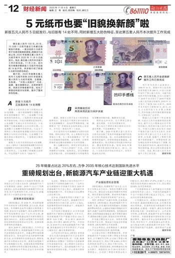 ~~~新版五元人民币5日起发行,与旧版有14处不同,同时新增五大防伪特征,至此第五套人民币本次提升工作完成
