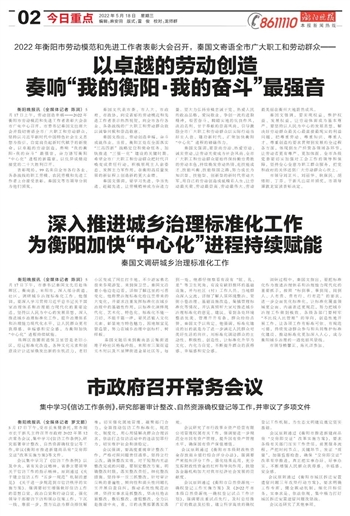 深入推进城乡治理标准化工作 为衡阳加快“中心化”进程持续赋能