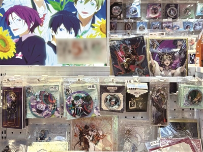 “吧唧”(徽章)、手办、卡片、立牌、挂件、娃娃等二次元周边琳琅满目,动漫人形立牌与身着二次元服饰的coser随处可见,合影快门声不绝于耳。